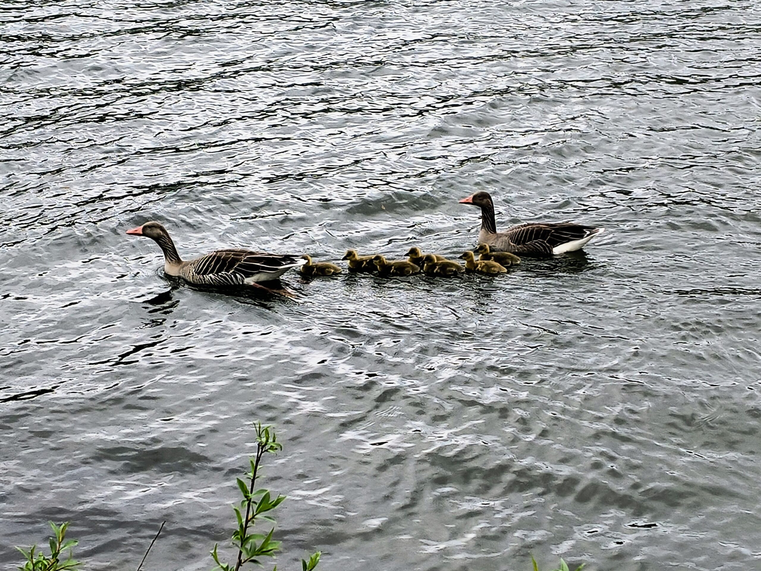 … die Nilgänse und ihr Küken interessiert es nicht.