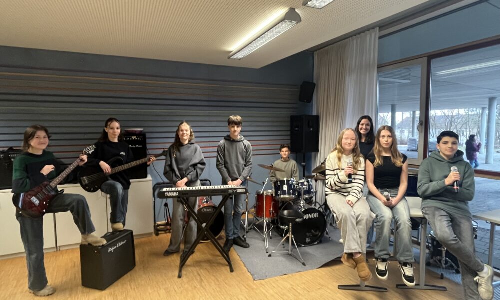 Am Freitag steigt das große Bandkonzert! Schulband, Lehrerband „Krach & Kreide“ und die neue Achtklässlerband treten auf. Wie die entstand und gleich schon überzeugte, lest ihr hier. Dazu ein Interview mit Mitgründerin Kristin Wiedenmann.