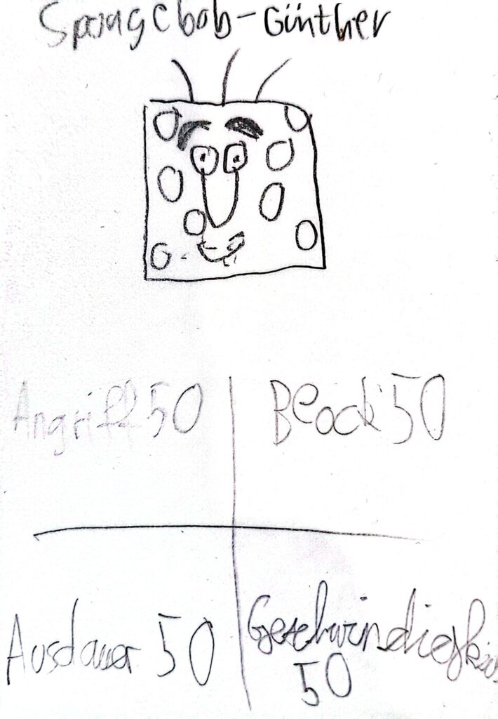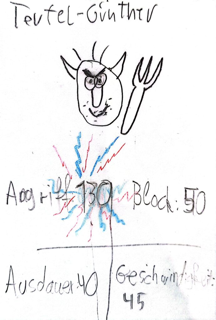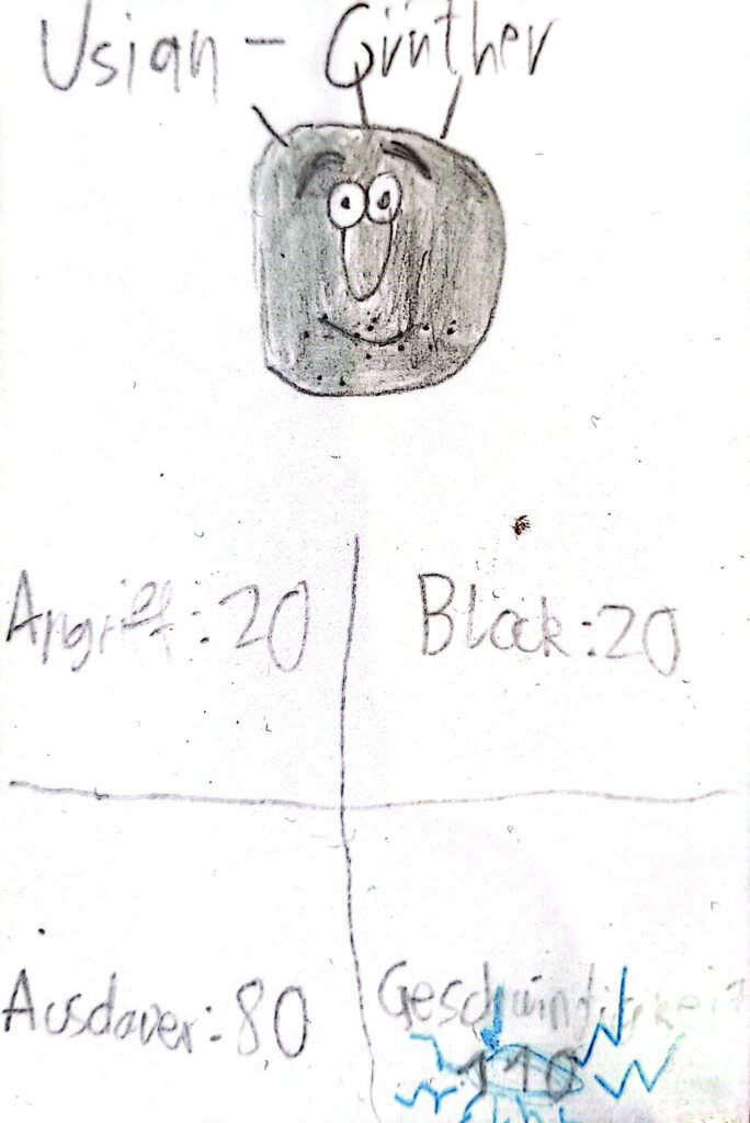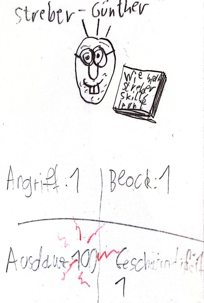 Es war einmal ein Junge, dessen Name nicht genannt werden darf. Nennen wir ihn GG. Ihm war in einem Fach, das nicht genannt werden darf (“Mathe”), langweilig. Aber das kennt man ja. Da ist er auf die Idee gekommen, etwas zu malen. Und das war die Geburtsstunde Günthers. Seitdem sind viele Schulstunden vergangen, viel Zeit für Günther zu wachsen.