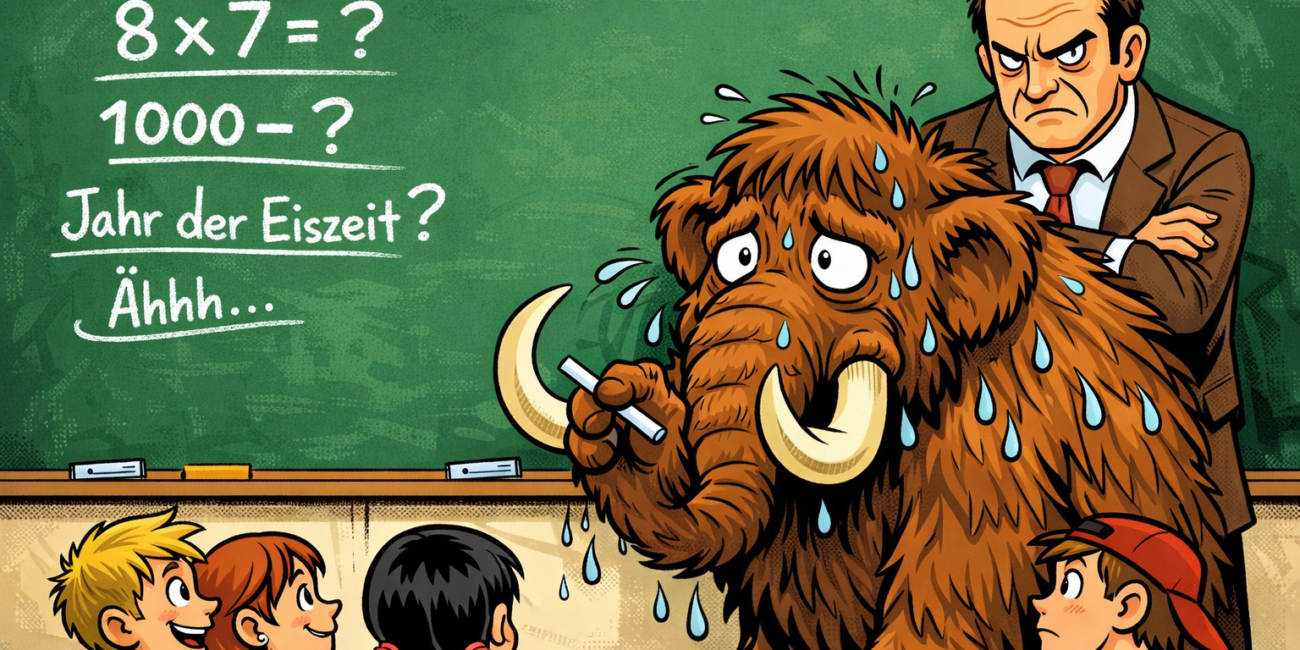 Der verurteilte Schüler steht alleine vor der Tafel, bewaffnet nur mit einem Stift und einem Kopf, der sich anfühlt, wie mit grauem Rauch gefüllt. Das erwartungsvolle Gesicht des Lehrers blickt auf ihn hinab. Doch wir Schüler haben Angst.