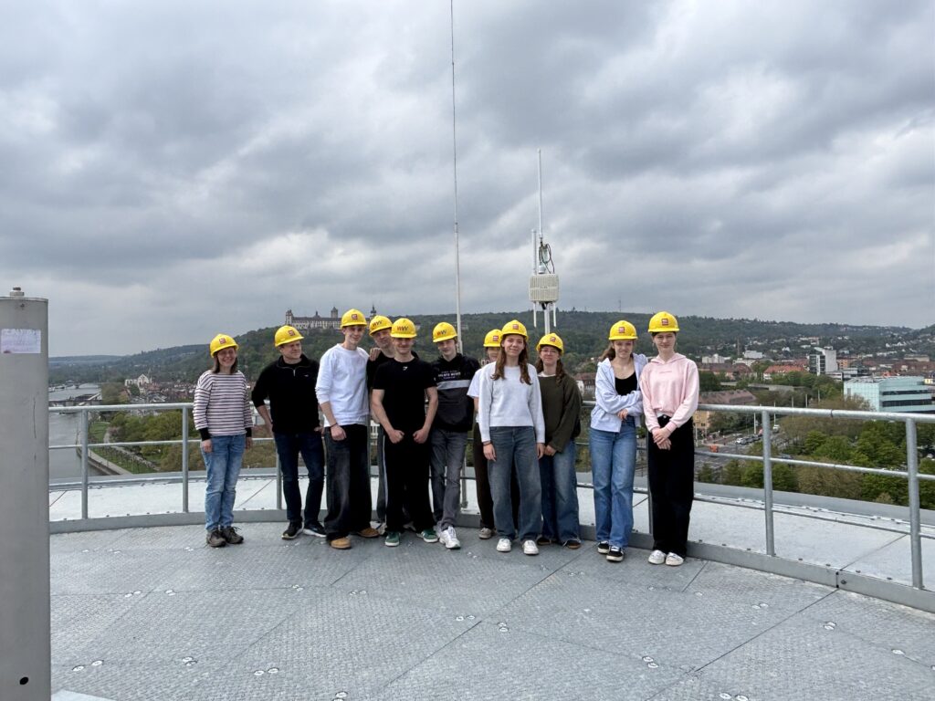Die Tour ging erst mal mit einer Wanderung los, denn wir liefen nach Würzburg. Das fanden manche nur mittelgut. Dort angekommen bekamen wir aber spannende Einblicke in die Energieversorgung unserer Stadt. Nachdem wir am Anfang unsere Sachen abgelegt und Schutzkleidung angezogen hatten, begann die Führung durch die Anlage. Zuerst ging es durch enge Treppenhäuser in große, verwinkelte Räume voller Rohre, die fast wie ein weitläufiger Keller wirkten. Besonders beeindruckend war eine riesige Halle mit mehreren Metern Höhe, in der es durch die Maschinen sehr laut war. Das führte leider auch dazu, dass nicht alle Erklärungen unserer Führer verständlich waren.