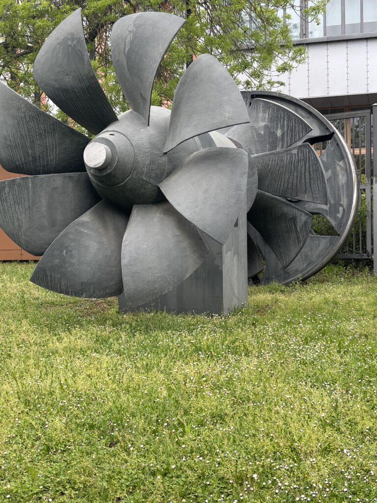 Im weiteren Verlauf erfuhren wir mehr über die Geschichte des Kraftwerks, das seit 1954 besteht und früher mit Kohle betrieben wurde. Heute nutzt es moderne Gas- und Dampfturbinen, die effizienter und umweltfreundlicher sind. Besonders gelungen war der Umbau der Anlage vor 20 Jahren, vorher war es einfach eine hässliche Industrieanlage vor dem Würzburger Stein, jetzt sieht es ein bisschen aus wie ein Raddampfer.
