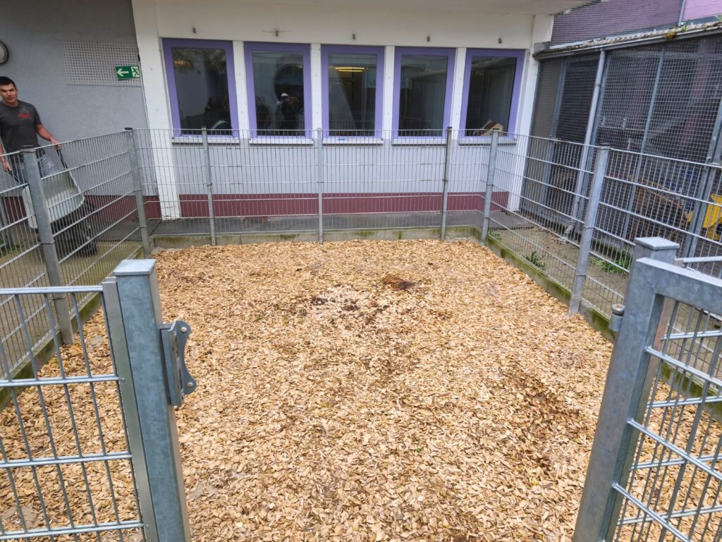 Zuerst mussten die alten Hackschnitzel raus. Motiviert fuhren wir eine Schubkarre nach der anderen weg, nur um dann frische neue Hackschnitzel wieder herzubringen. Am Ende richteten wir es noch gemütlich ein mit ein paar Spielzeugen, Decken und natürlich frischem Wasser.