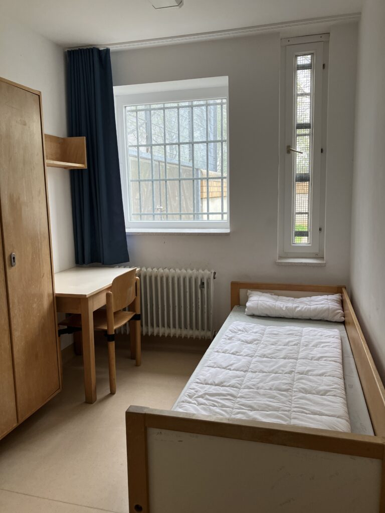 Bei unserer Ankunft wurden wir in 2 Gruppen eingeteilt. Die eine Gruppe hat erstmal theoretisches Wissen über die Funktionsweise und den Alltag des Jugendarrests bekommen. Dort haben wir erfahren, dass der Jugendarrest nur der Erziehung dient und maximal 4 Wochen dauert, wobei es auch Sonderformen wie den Freizeitarrest gibt, bei dem man nur von Samstag bis Montagmorgen dort ist. Was uns verwundert hat, ist, dass die Essenszeiten sehr früh sind. Das Mittagessen findet schon um 11 Uhr statt und das Abendessen dann auch um 16 Uhr.