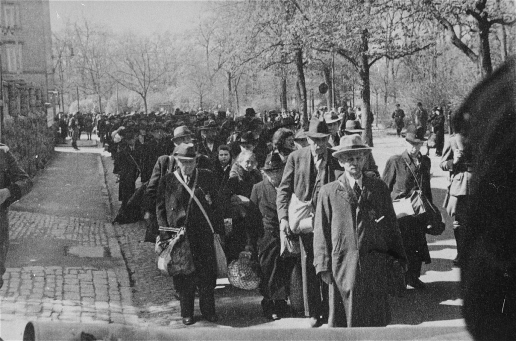 Die Bilder zeigen die Dritte Deportation der Juden am 25. April 1942 in der Martin-Luther-Straße. Das letzte Bild zeigt die Rampe zum Bahnhof Aumühle.