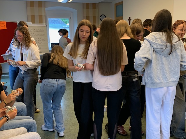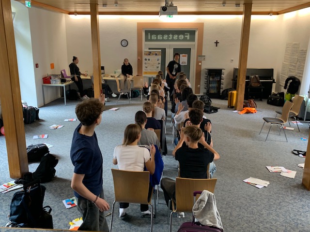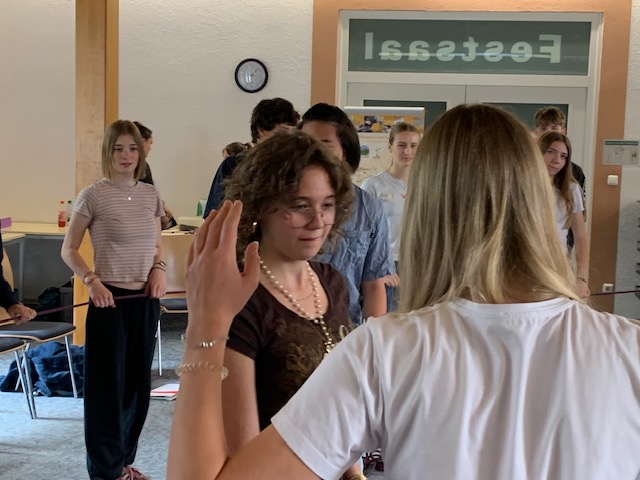 Am 4. 6. um 8 Uhr startete unsere Reise an der Schule. Nach einer kurzen Fahrt, haben wir Miltenberg erreicht, dort sollt unsere Tutorenschulung stattfinden. In der Jugendherberge wurden wir von unseren Teamern mit Kennenlernspielen herzlich begrüßt. Nach einer kurzen Mittagspause, mit sehr leckeren Essen, konnten wir unsere Zimmer beziehen. Am Nachmittag ging es mit dem Programm weiter, wir haben darüber gesprochen, wie wir am besten Spiele anleiten können und mit den Kindern auf einer Ebene kommunizieren können. Nachdem wir zu Abend gegessen hatten, haben wir mehrere Runden Werwolf gespielt. Am späten Abend saßen wir alle noch zusammen und haben Karten gespielt.