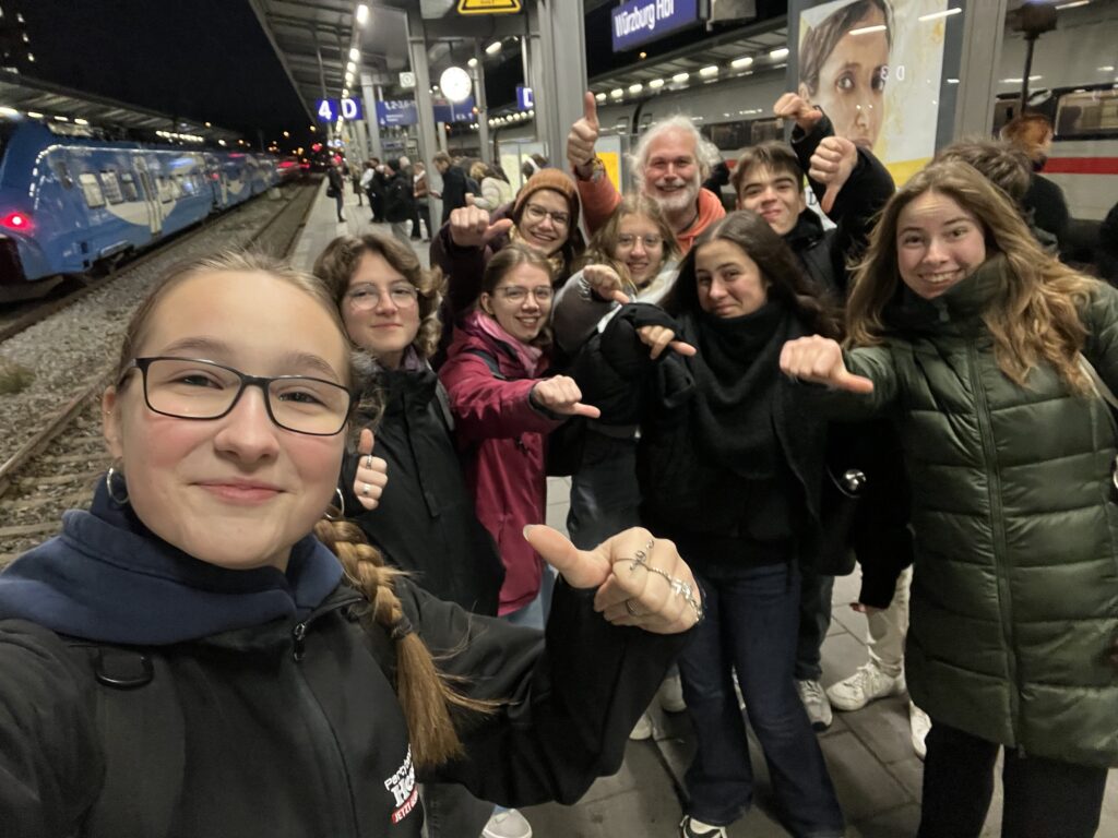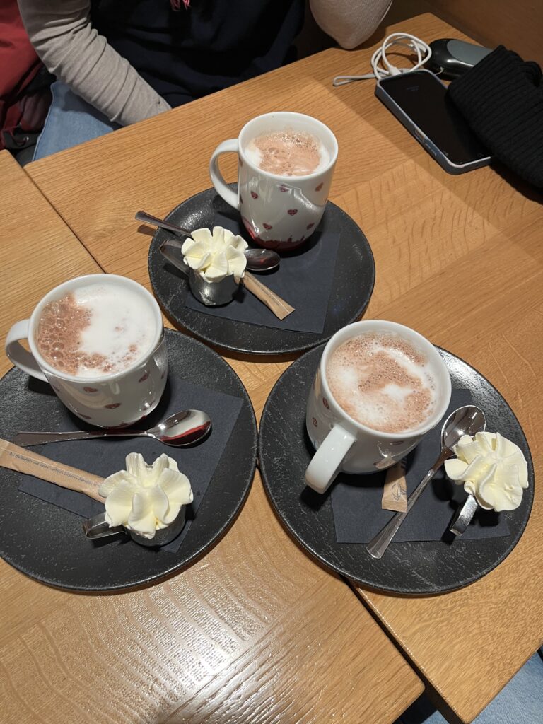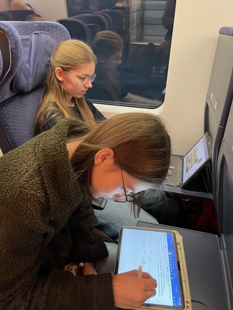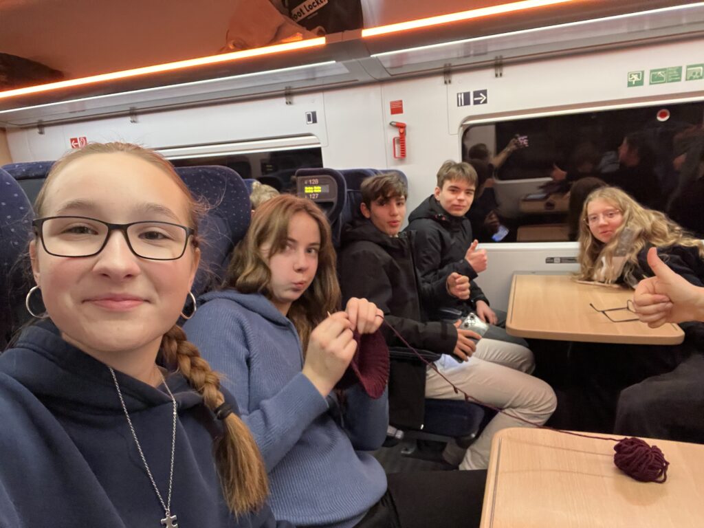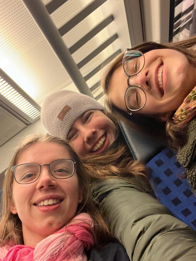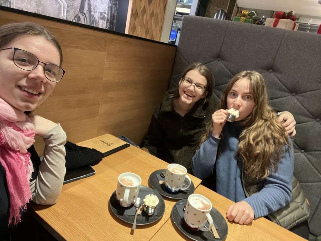 Uns dreien hat das Schreibseminar sehr gut gefallen. Wir waren überrascht wie viele Aspekte des Schreibens uns nicht bekannt waren und haben wirklich viel mit genommen. Danach ging es auch für uns noch auf den Weihnachtsmarkt und nachdem wir uns mit Bratwurst und Crêpes gestärkt haben, haben wir uns einen Punsch gegönnt. Jetzt frieren wir am Gleis und warten auf den Anschlusszug.