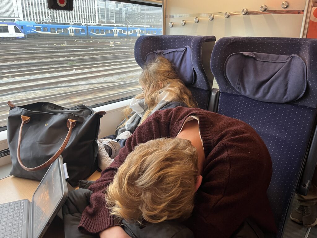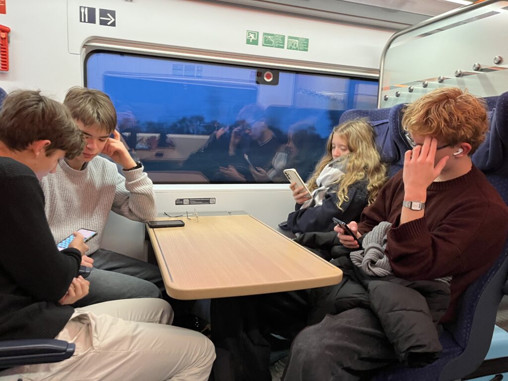 Viele schlafen, manche spielen am Handy, wenige machen Hausaufgaben und eine strickt Mützen