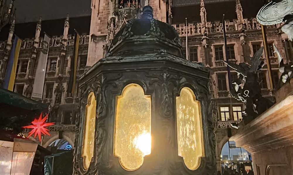 haben wir leider verpasst, aber immer noch bewundern wir das wunderschöne Rathaus am Marienplatz.