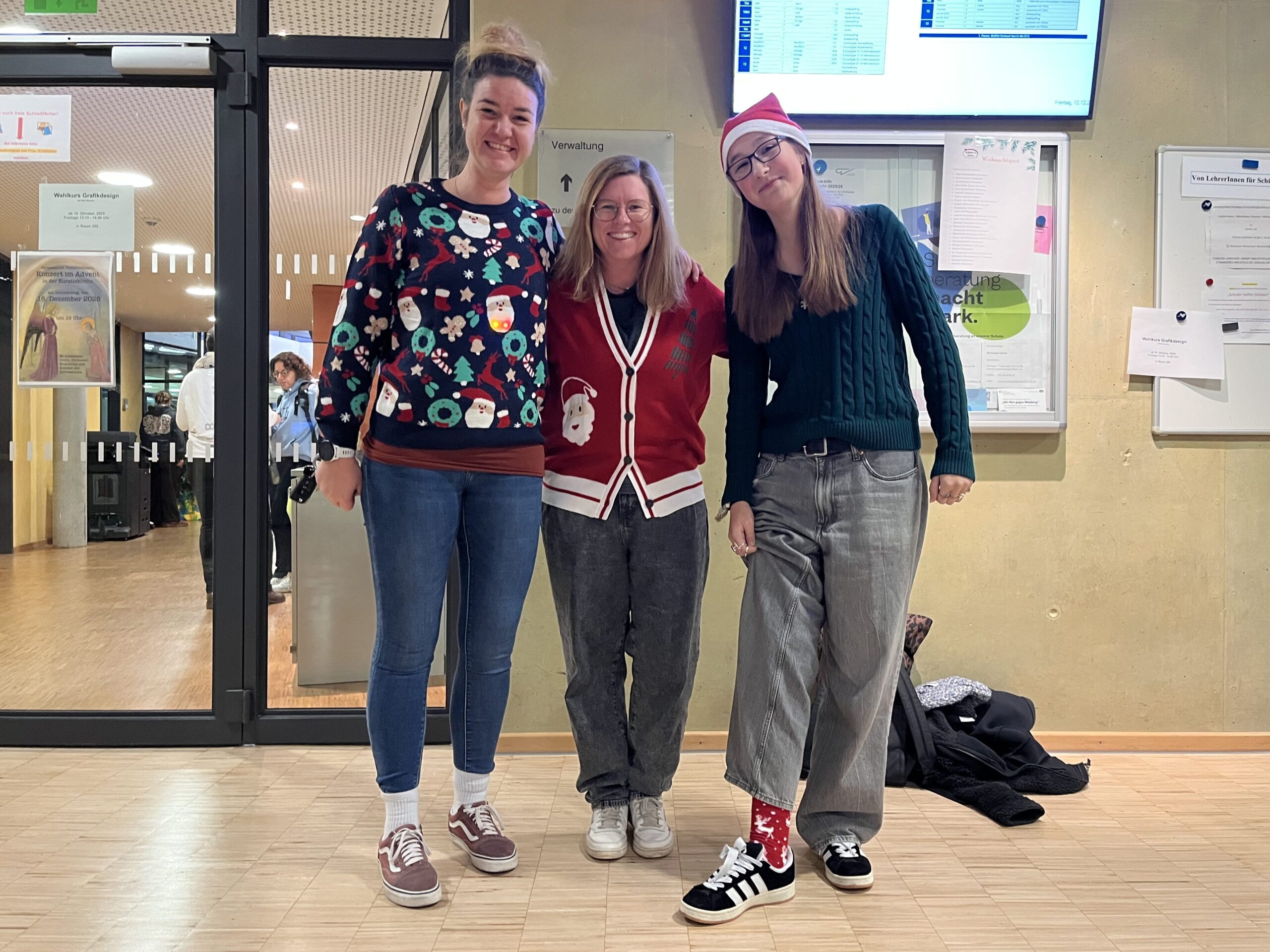 Und natürlich präsentierten Frau Paulics und einige Schüler auch an diesem Tag ihre Weihnachtspullover (keine Sorge, die wurden noch crazier, je näher Weihnachten rückte)