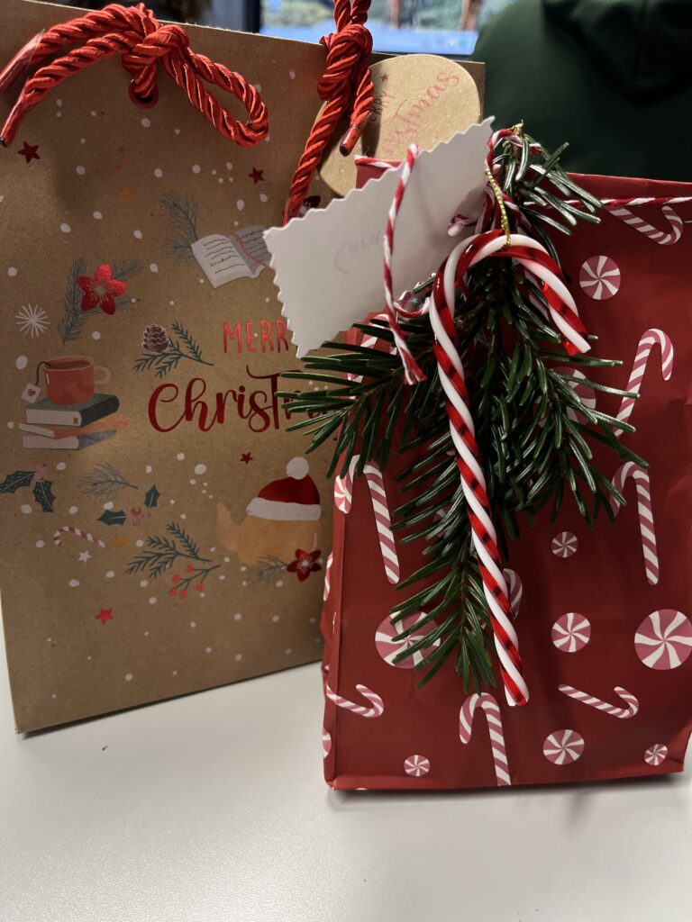 In der letzten Klassenleiterstunde der 11b wurden an diesem Tag die Wichtelgeschenke ausgetauscht. Jeder legte noch vor 8 sein Geschenk ins Klassenzimmer und dann teilte der Weihnachtself sie aus und jeder bekam seines.