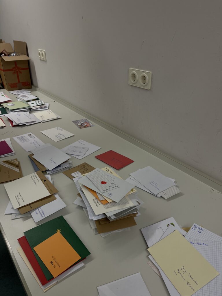 Da am Dienstag Einsendeschluss gewesen ist, für die externe Weihnachtspost, traf sich der AK-Post und sortierte die Post, die wenige Tage später weggebracht wurde.