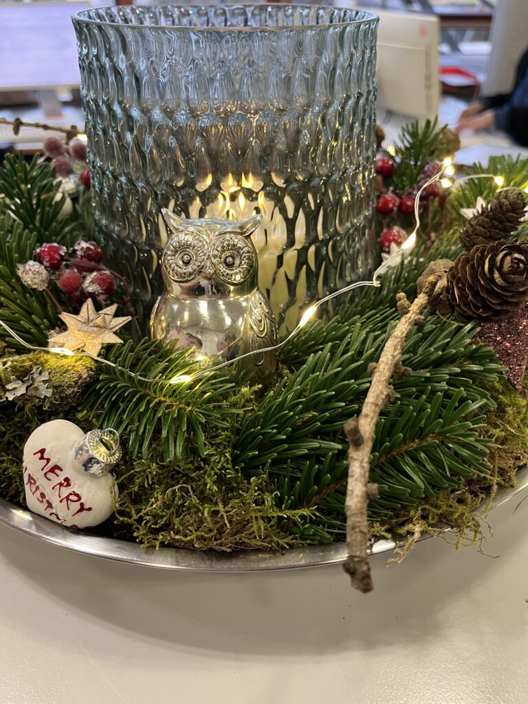 Auch im Sekretariat hat es geweihnachtet: Lichterketten und ein wunderschöner Kranz!