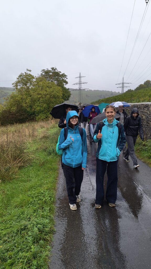 Herr Schulz ist von der Aktion begeistert, ohne Regen sei es zwar besser, aber Regen stehe seiner Freude an Bewegung nicht im Weg. Er findet, der Wandertag stellt eine gute Möglichkeit dar, Gespräche zu führen und nachzudenken.