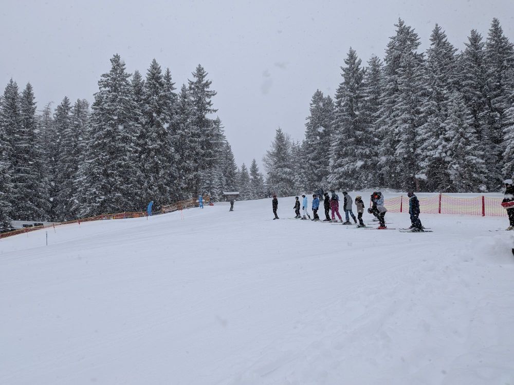 Schon am Sonntag ist die erste Truppe der 7. Klassen zum legendären Skikurs aufgebrochen. Es hat dann aber ein bisschen gedauert, bis sie wirklich Ski fahren konnten.