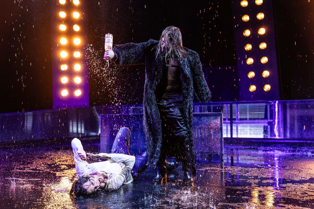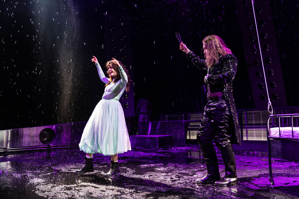 Obwohl ich die ganze Storyline vorher noch nicht kannte, war die Handlung super zu verstehen. Beeindruckend fand ich das Bühnenbild, was mich direkt schon gecatcht hat, als der Vorhang aufgegangen ist. Eigentlich war es relativ minimalistisch gehalten, aber durch die Scheinwerfer und den zwischenzeitlich fallenden Regen war es sehr schön anzusehen. Highlight war natürlich auch das Bett, das am Anfang an der Decke schwebte, und dann immer wieder rauf und runter gezogen wurde, mitsamt Schauspieler darauf. Sehr stark fand ich auch die schauspielerische Leistung, da ich auch selbst Theater spiele. Bei einem Bühnenbild im Regen zu spielen, und sich dabei auch in die Pfützen am Boden zu legen … das haben alle Schauspieler sehr gut gemacht. Insgesamt, war das Stück sehr gut inszeniert und auf jeden Fall die Fahrt wert.