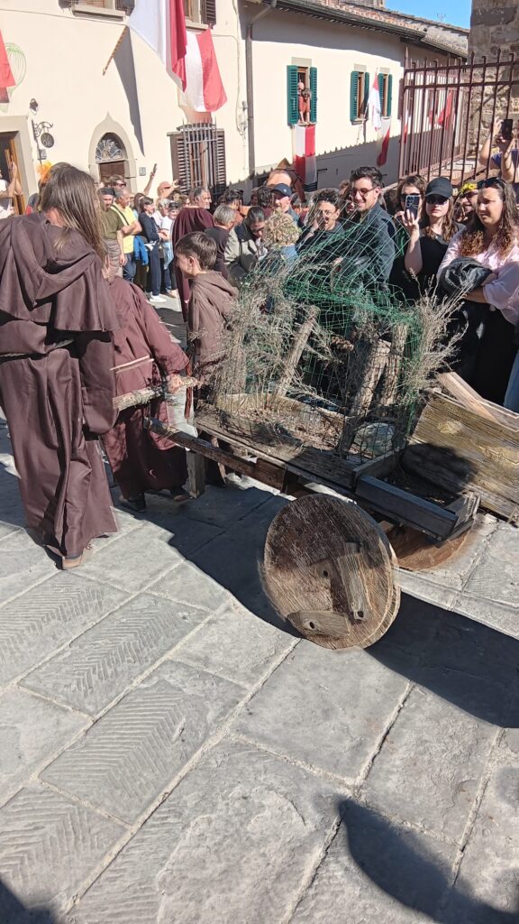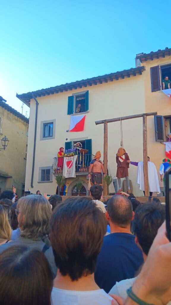 Danach fuhren wir noch auf das Mittelalterfestival in Panzano. Dort waren alle Bewohner verkleidet, um in die Zeit zu passen. Wir haben uns eine Aufführung angeschaut, in der gezeigt wurde, wie diejenigen, die Unrecht getan haben, bestraft wurden. Auch wenn wir nicht so viel verstanden haben, haben die Schauspieler die Stimmung gut rüber gebracht, und alle haben mitgefiebert. Am Abend konnte man sich noch einen wunderschönen Sonnenuntergang über der Toskana anschauen.