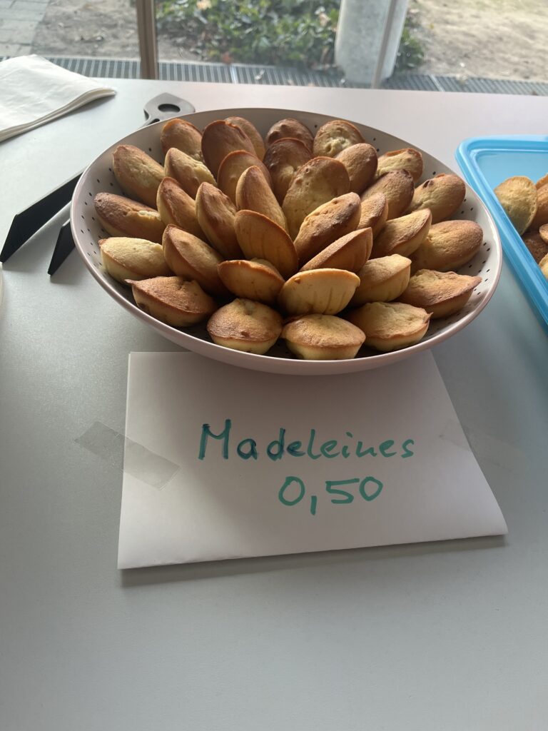 Klar, so ein Tag plant sich nicht von alleine. Also bereitete die Fachschaft Französisch mit ihren Klassen schon lange im Voraus alles vor. Wer bringt Kuchen mit? Wer kann Crêpes-Teig mitbringen? Wer backt? Wer verkauft? All diese Aufgaben wurden verteilt und am Ende kamen fast 30 Kuchen und Quiches zusammen. Die elfte Jahrgangsstufe backte in den ersten vier Stunden fast ohne Pause Crêpes, damit in der Pause dann auch jeder einen bekam. Bereits am Vortag wurde außerdem mit einigen Plakaten, mit Bildern von unseren Austauschen, aber auch vom Élysée-Vertrag die Aula geschmückt.