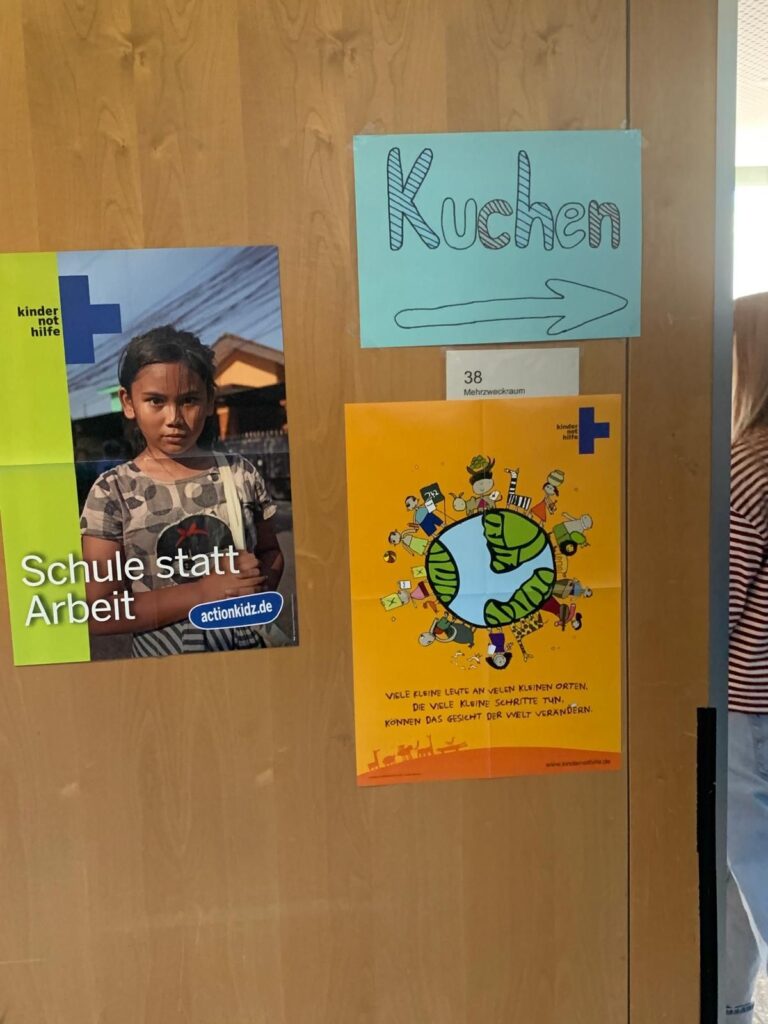 Ein Teil des Geldes, das heute eingenommen wurde, fließt in die Kindernothilfe, wie ihr vielleicht auch schon auf den Plakaten in der Aula gesehen habt. Der andere Teil wird die Finanzierung der Begegnungsfahrt in Breisach zu Gute kommen.