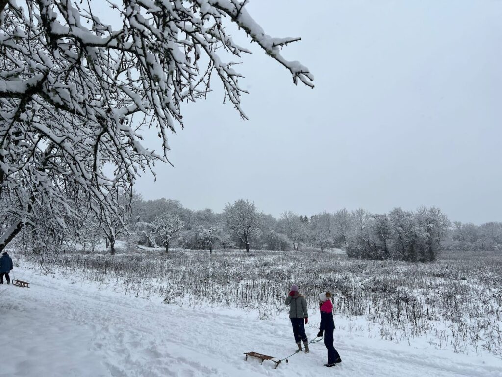 Seit meiner Kindheit gibt es für mich nur diesen einen Schlittenberg, seit 2010 gibt es Bilder von mir und meinen Eltern dort, im tiefen Schnee. Sobald genug Schnee gefallen war, verbrachte ich mit meinen Geschwistern den ganzen Tag dort, baute Rampen und rodelte bis zum Abend. Traditionell begleitete uns eine Kanne Kinderpunsch, an der wir uns jedes Mal die Zunge verbrannten. Dieses Jahr konnten wir sogar unseren Hund vor die Schlitten spannten – der Schlittenberg bleibt ein großer Teil meiner Kindheit.