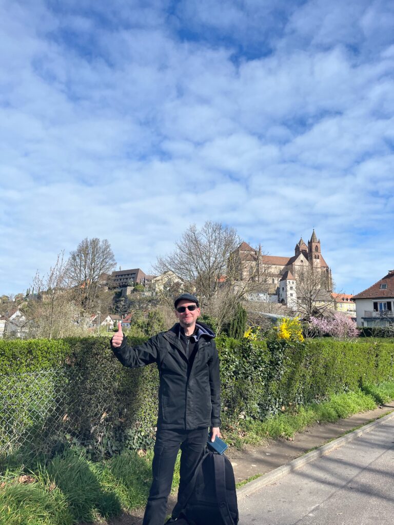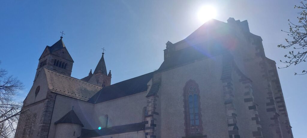 Arrivés à Breisach, nous avons tourné une interview sur une grande terrasse ensoleillée, au pied d’une cathédrale qui trônait au sommet de la colline. Ce décor particulier a fait de ce tournage un véritable moment fort grâce à la vue imprenable sur la magnifique ville de Breisach et a donné à notre échange une atmosphère passionnante.