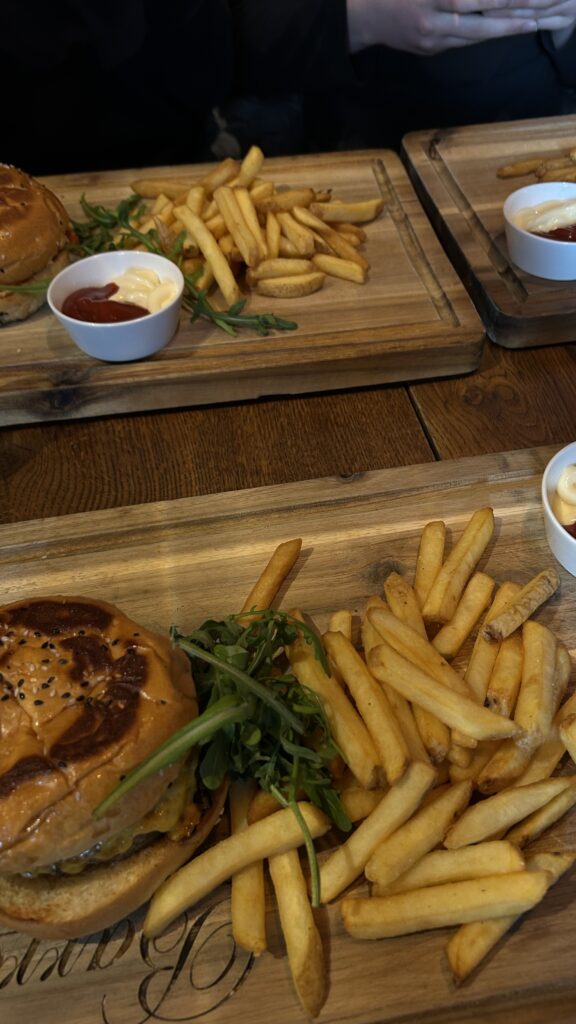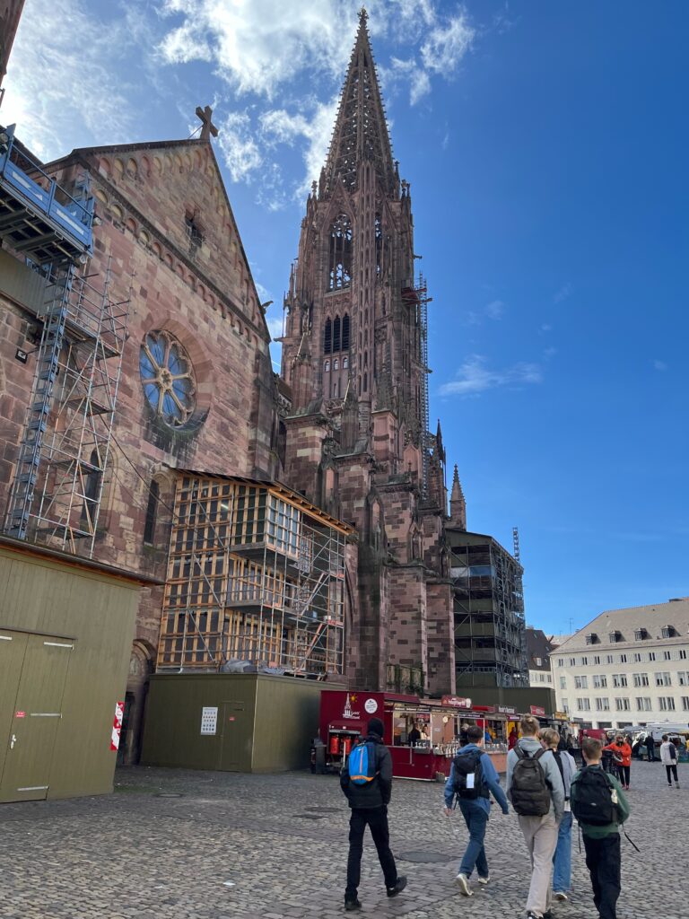 Mittags trafen wir uns alle gemeinsam vor dem Museum zu einem gemeinsamen Picknick, um uns mit Lunchpaketen zu stärken. Die Pause kam perfekt und gab uns nochmals Energie für den restlichen Tag. Nach dem Picknick ging es mit dem Bus weiter in die Innenstadt. Dort besichtigten wir das Straßburger Münster, das uns an Notre-Dame (in Paris) erinnert hat, jedoch etwas kleiner war. Danach marschierten wir durch die Altstadt, checkten deren Gassen ab und legten eine weitere private Essenspause in einem tuffen Burgerrestaurant ein.