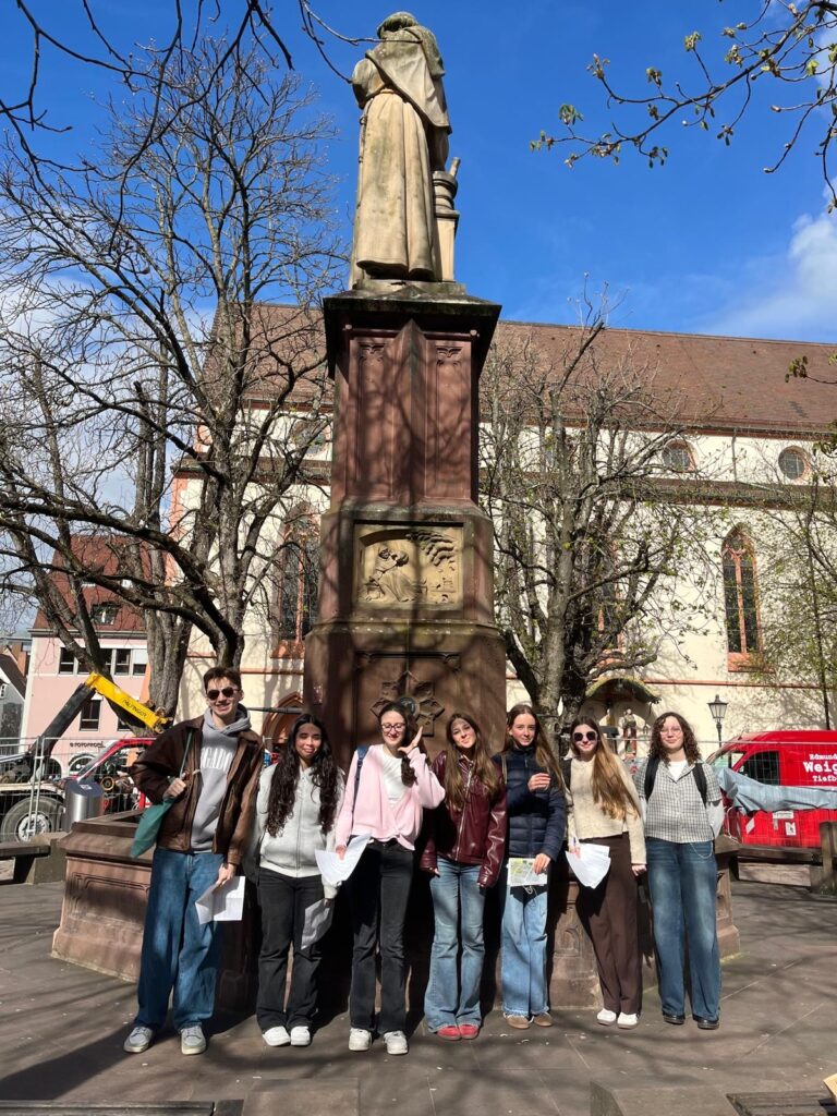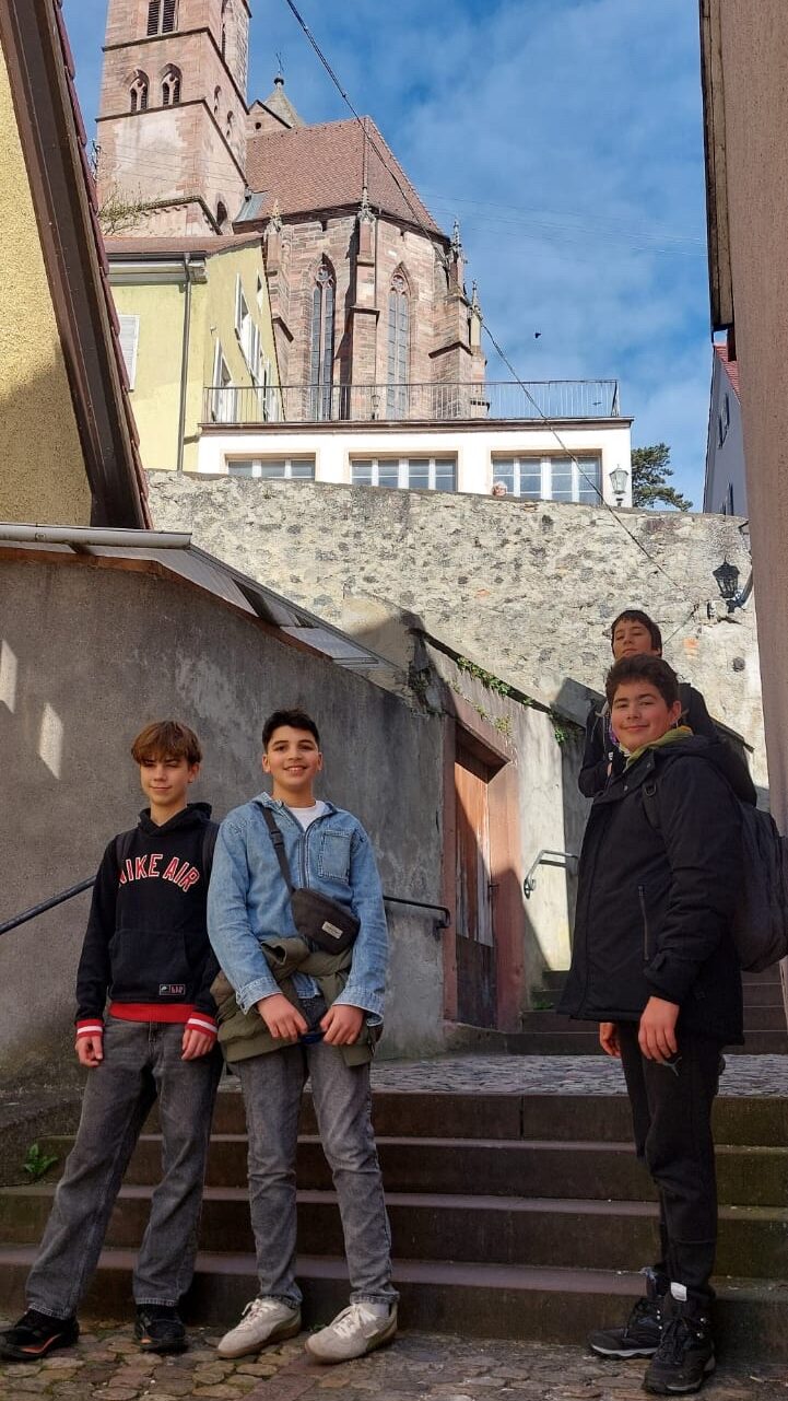 Nous sommes arrivés à la gare de Strasbourg, puis nous avons rencontré nos correspondants, qui étaient très accueillants et nombreux, ce qui nous a tout de suite mis à l’aise. Ensuite, nous avons pris le bus avec nos correspondants pour aller à notre auberge de jeunesse et avons vu en même temps la ville et ses magnifiques bâtiments anciens. Nous avons notamment vu une très belle cathédrale, impressionnante par sa taille et sa couleur. Il y avait aussi beaucoup de vélos dans la ville, ce qui nous a surpris. Strasbourg est proche de l’Allemagne et on y entend plusieurs langues, comme le français, l’allemand et l’alsacien, ce qui rend la ville vivante et intéressante.