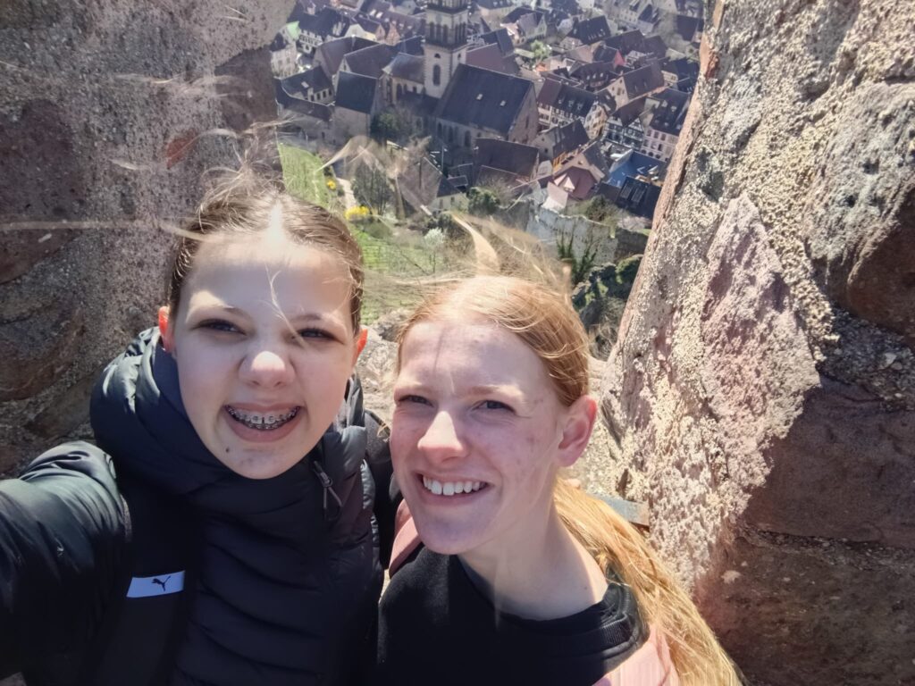 Oben angekommen wurden wir aber belohnt: Ein großer Turm mit einer langen Wendeltreppe und eine richtig schöne Aussicht über Kaysersberg. Ein kleiner Schreckmoment war allerdings auch dabei, weil eine Treppe kaputt war. Trotzdem war es spannend, alles zu erkunden.