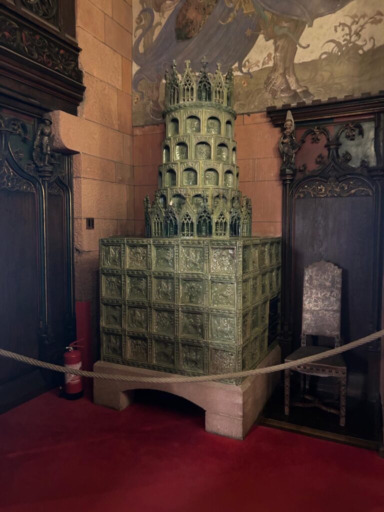 Une fois la visite terminé, nous avons flâné encore un moment dans les ruelles pittoresques du village avant de remonter dans le car et de gravir les lacets escarpés menant au château du Haut-Koenigsbourg. Une fois arrivés au sommet, nous avons admiré les hautes remparts de ce château médiéval, mais nous avons été brièvement interrompus par les agents de sécurité qui nous ont fouillés à la recherche d’explosifs. Heureusement, le contrôle s’est révélé négatif. Nous avons ensuite commencé notre visite à travers les couloirs du château et admiré les canons extrêmement imposants.