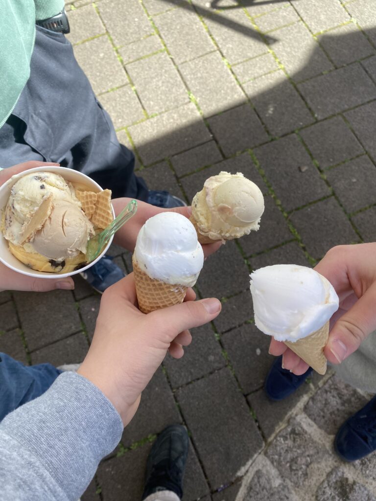 Heute wurden wir pünktlich um 6 Uhr 30 von unserem analogen Wecker aufgeweckt, da unsere Handys nachts anscheinend lieber bei Herrn Lazarus in einer Box übernachten. Um 7 Uhr dreißig ging’s dann ab zum Frühstück und dann über zur Tagesplanung. Danach waren wir in Breisach – und ja, wir sind tatsächlich zu Fuß hingelaufen. Das Wetter war so warm, dass selbst die Sonne wahrscheinlich eine Pause gebraucht hätte. Am Ende durften wir alleine rumlaufen, das war sehr cool. Also ist unser Fazit: heiß, anstrengend, aber absolut lohnenswert!