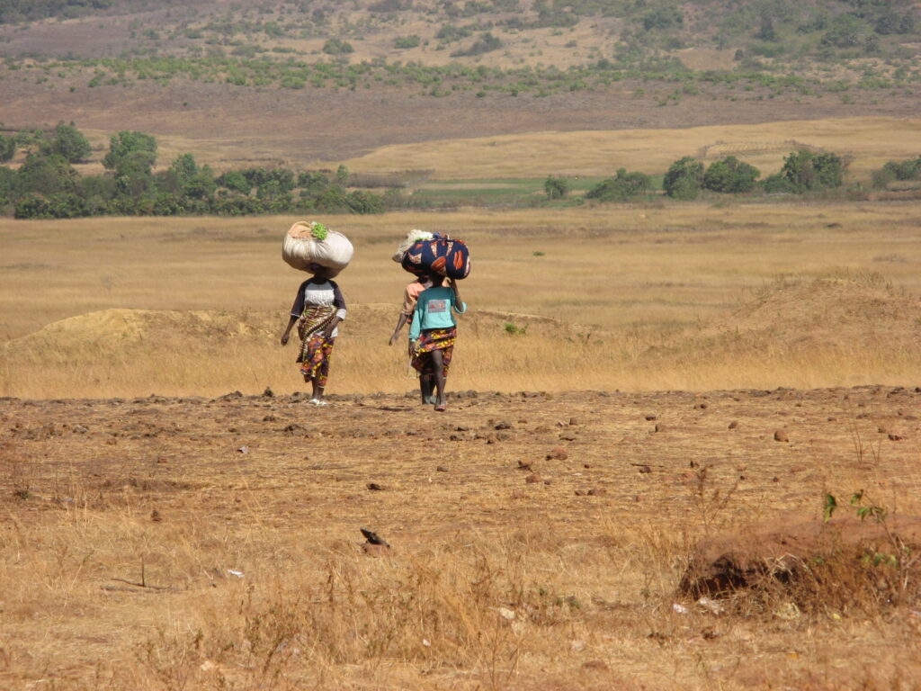 So wird gewandert und gereist: Mit 10-12 Kilo schweren Säcken auf dem Kopf, oft auch mit den Kindern auf dem Rücken. Wenn es keine Transportmöglichkeit in die nächste Stadt oder zum Acker gibt, wird gelaufen.