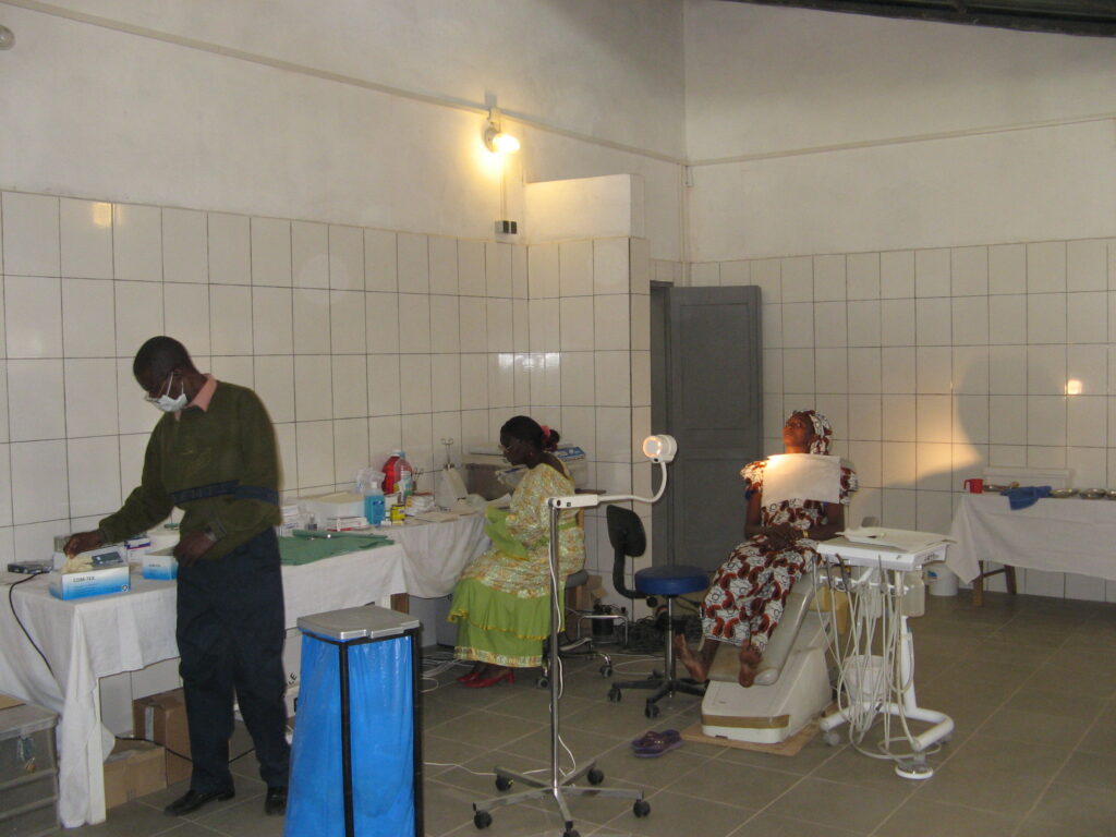 Hier werden die Patienten kostenlos versorgt! Die Ärzte bringen knappe Medikamente mit und es gibt sogar eine Chirugieabteilung. Außerdem ist hier einer von nur 5 guineischen Zahnärzten stationiert. Übrigens ist es nicht so, als ob die Menschen in Guinea zu primitiv wären, um als Ärzte zu arbeiten. Die Ausbildung und die Geräte sind einfach zu teuer und unter der korrupten Regierung wird alles immer schwieriger. Auch eine Ausbildung in Europa ist aufgrund der rigiden Einreisebestimmungen immer weniger möglich.