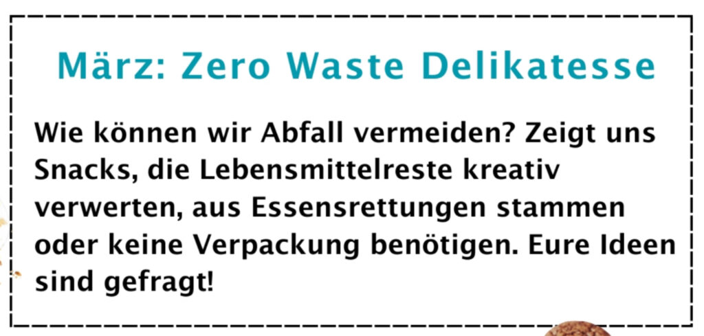 Das Fairtradeteam, geleitet von Frau Lehner, nimmt an der „Snack2change“-Challenge vom Monat März, der Stiftung Bildung teil. Das Förderprojekt youstartN sucht die „nachhaltigsten und kreativsten Snacks des Landes“.