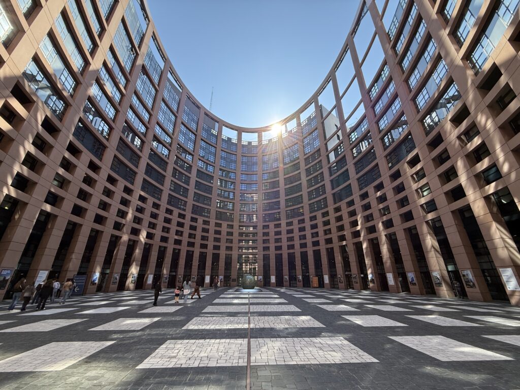 Natürlich kamen wir an weiteren europäischen Institutionen vorbei. Die Waagschalen des Europäischen Gerichtshofs sind klar zu erkennen.