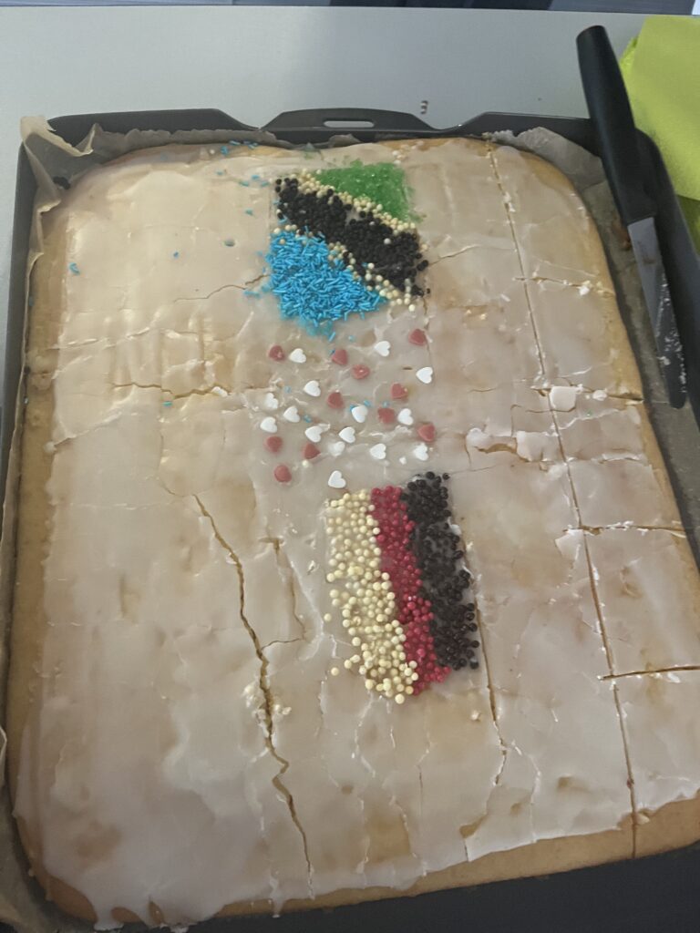In der Woche vor den Ferien haben wir einen Verkauf mit bunten Kuchen und Keksen gemacht. Dabei sind ganze 262,50€ zusammengekommen, die unserer Partnerschule in Tansania zu Gute kommen. Danke!