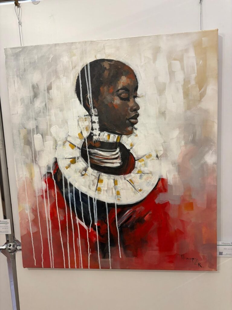 Neben bunten, lebensfrohen Bildern finden sich jedoch auch düstere Bilder die die aktuelle und auch vergangene Situation in Tansania thematisieren. Bei der aktuellen Situation geht es um die Wahlen. Im November gab es deswegen heftige Proteste, bei denen auch Menschen zu Tode gekommen sind. Und natürlich spiegeln sich solche Spannungen innerhalb eines Landes auch in der Kunst wieder. Auch zu der vergangenen Kolonialzeit finden sich Bilder, die einen tatsächlich zum Nachdenken bringen.